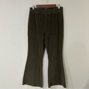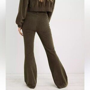 Aerie Groove On Rib Velour Khaki Dark Green Flare Pant Women’s Size Large