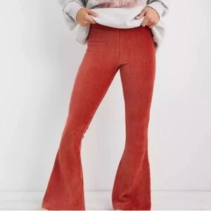 Aerie Groove-On Velour High Waisted Flare Pant - Color Rust Belt