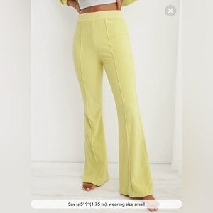 Aerie Groove-on Rib Velour Corduroy Flare Green Women’s Medium Regular