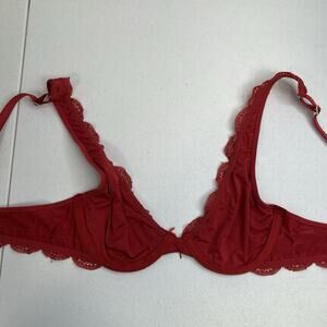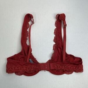 Aerie Happy Size 32A Bra Very Sexy Lined Demi Push Up Underwire Red Lace Plunge