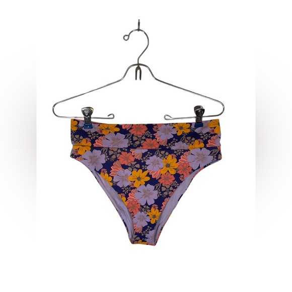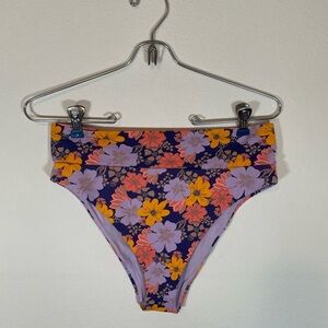 Aerie high cut cheeky bikini bottoms. This adorable bottom is a floral design with a very figure flattering waist line. Size large.