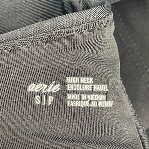 Aerie High Neck Crop Bikini Top Women Small Black Adjustable Removeable Pads NWT