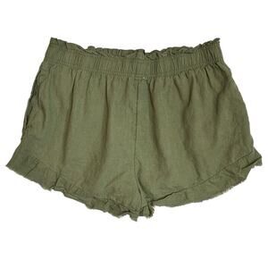 Aerie High Waisted Linen Ruffle Shorts Olive Green Size L