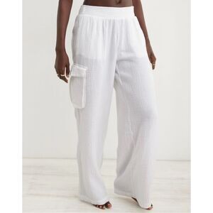 Aerie High Waisted Pool-To-Party Cargo Gauze Pant White Wide Leg Cotton XXL