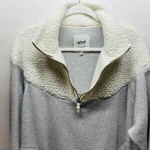 Aerie Hometown Holiday Quarter Zip Women's Medium Fleece Sweatshirt Grey White