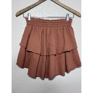 Aerie Hoodie Mini Skirt Ruffled Rust Orange Size Extra Small 100% Cotton