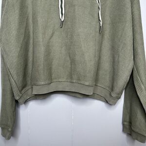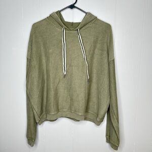Aerie Hoodie Women Size Small Green Ribbed Terry Cropped Hooded Sweatshirt Boxy
