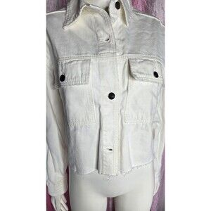Aerie Ivory Cropped Medium Raw Hem Boxy Lightweight Jean Jacket Size Medium