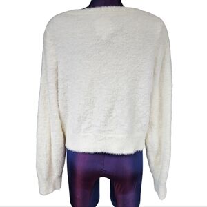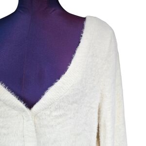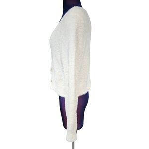 Aerie Ivory Fuzzy Cropped Button Front Cardigan Sweater Size Large Juniors V46