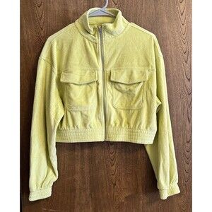 Aerie Jacket Womens Small Cropped Ribbed Corduroy Zip Up Jacket Pockets Yellow