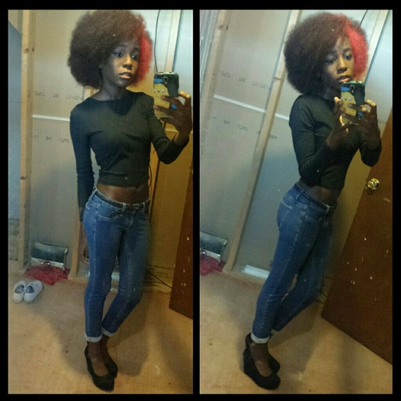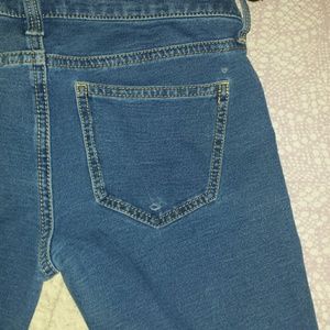 These jeggings are small for a size four. I'm tired of having to pull them up all the time, lol. They are ankle length and stretchy! They have been worn more than a few times. It also has three holes, as shown. (I hope that's okay!)