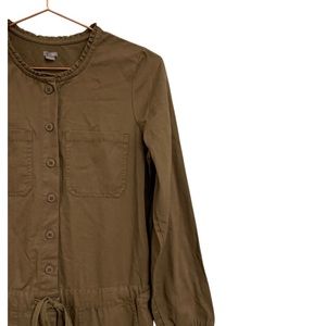 Aerie Ruffle Neck Olive Utility Jumpsuit. Drawstring Waist. Elastic cuffs. No flaws. Size XS.
