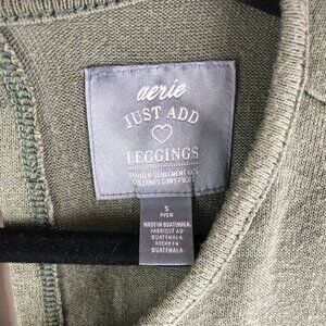 Aerie Just Add Leggings Olive Green Long Sleeve Top Back Ties Oversized Size S