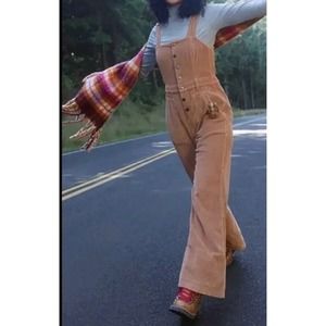 Aerie Kick Flare Thick Corduroy Wide Leg Jumpsuit Overalls Camel Tan WOMENS SIZE SMALL