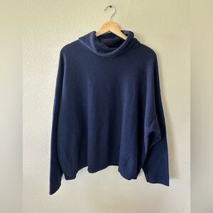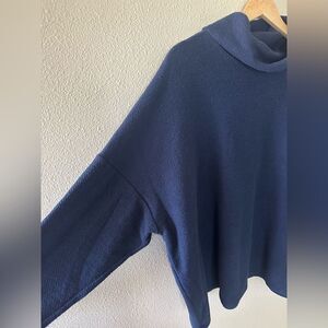 Aerie Knit Cowl Neck Textured Pullover Sweater Loose Fit Navy Blue Size XL