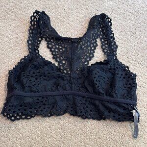 Aerie Lace Crochet Bralette Racerback Black Boho Comfort Sexy MEDIUM #3434022471