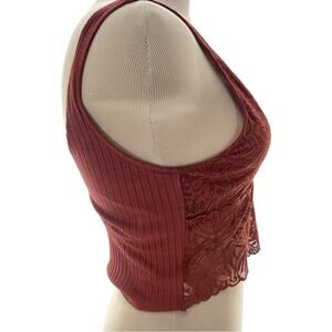 Aerie Lace Deep Plunge Partially Sheer Ribbed Back Bralette Top Size Medium