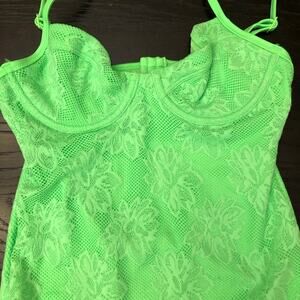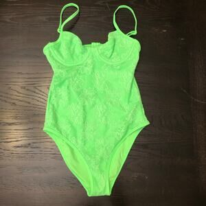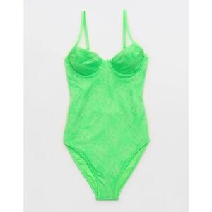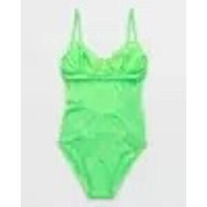 Aerie Lace Underwire One Piece Swimsuit neon green cutout back sz small