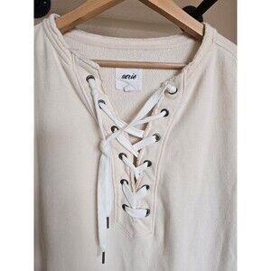 Aerie Lace Up Oversized Sweatshirt Cream women's size small