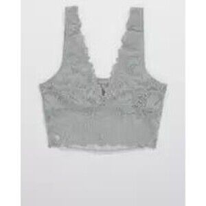 Aerie Lace Waffle Longline Bralette Medium Heather Gray Size Medium