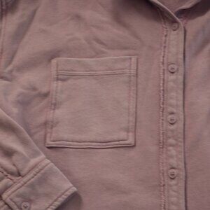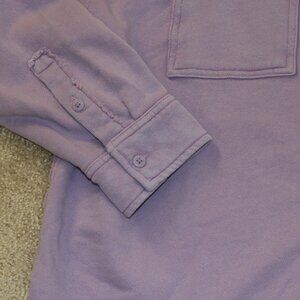 Soft lavender button-up shirt. Features two front pockets. Long sleeves with button cuffs. **oversized XS**