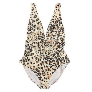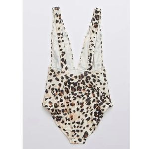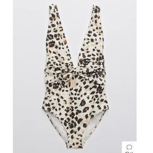 Aerie Leopard Deep Plunge One Piece Swimsuit Size Large Tie Front Full Coverage