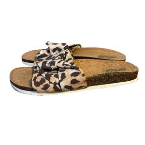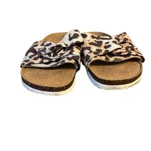 Pre owned excellent condition. Worn once or twice. There is minor wear on the bottoms but no wear on cork soles. Stylish leopard print slide sandals with a comfortable cork sole. Perfect for casual outings. WOMENS size 9.