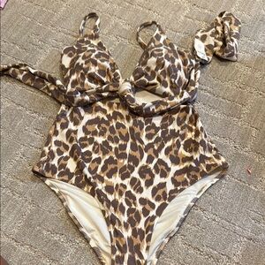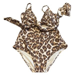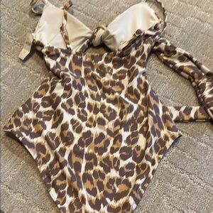 Stylish leopard print one piece. Features a chic design with adjustable straps. Perfect for beach or pool.