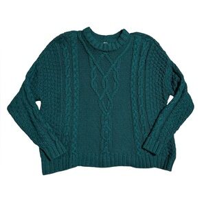 Aerie Linden Emerald Green Cable Knit Crewneck Pullover Sweater Womens Medium