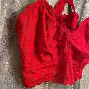 Aerie Lipstick Red Floral Lace Racerback Bralette XXL