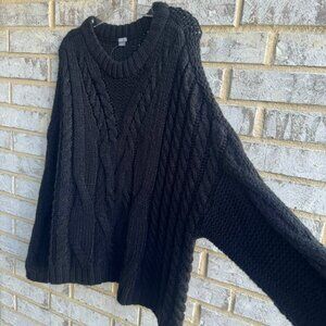 Aerie Long Sleeve Crew Neck Cable Knit Black Oversized Sweater Women's Size XL.
