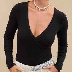 Aerie Long Sleeve Cross Front Bodysuit