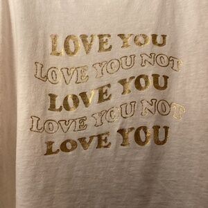 Like New. This Aerie LOVE ME, LOVE ME NOT tee shirt is so cute for your day out, whether it’s shopping, chilling on the beach, or taking your favorite pooch out for a walk.