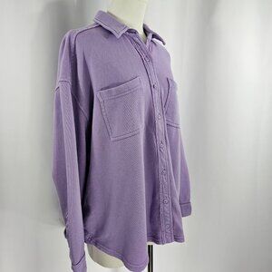 Aerie Lumber Jane Women's Oversized Distressed Shacket Top Lilac Purple Size S