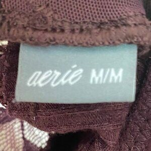 Ribbed Aerie lace bralette in rich burgundy with adjustable straps and a comfy longline band—wireless and easy for lounge-to-street or layering under tees/knits. Size Medium.