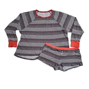 Aerie Maroon Red Fair Isle Long Sleeve Thermal Pajama Short Set Womens Large