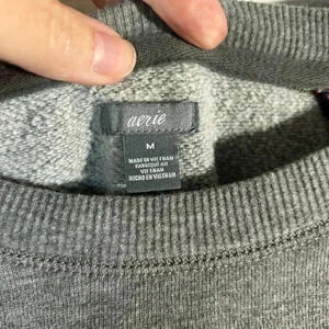 Aerie Medium Crewneck Sweatshirt with Red Plaid Sleeves.