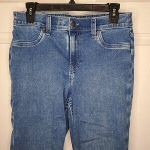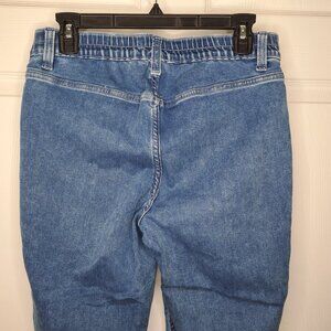 Very good condition jeans from Aerie in a medium wash. Stretchy with extra elastic at the back of the waistband. No pockets. Size Medium; measures about 15 inches across the waist, 10 inch rise, 31 inch inseam and 10 inch leg openings.