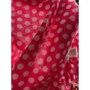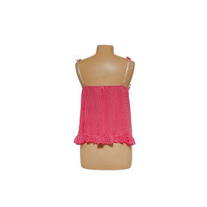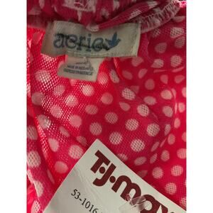 Stay chic and stylish in this Aerie mesh blouse. The pretty pink color and polka dot pattern make it a must-have for any wardrobe. Made of nylon fabric, it's comfortable and perfect for any occasion. Size M, 13in pit to pit, 22in length. Regular size, perfect for women. Add it to your cart now!