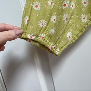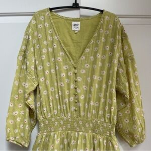 Aerie Mini V Neck Lined Green Floral Smocked Waist Peasant Sun Dress Summer