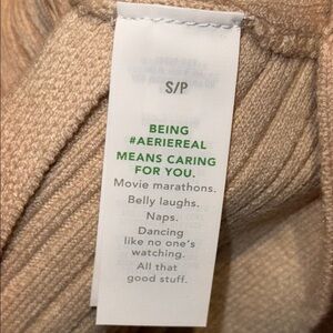 Aerie NWOT Women's Cropped Reversible Off-Shoulder Ribbed Sweater Tan small