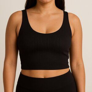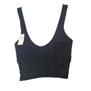 Aerie NWT Black Ribbed Crop Tank Top with Built-In Bra | Size Medium