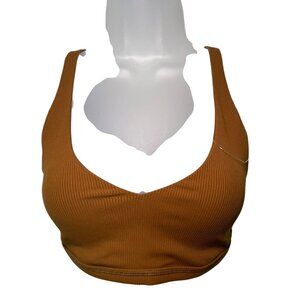 New with tags Aerie Ribbed Plunge Bralette in a rich brown shade. Features a soft, stretchy ribbed fabric with a flattering deep V neckline and stylish double shoulder straps. The back panel is made of breathable mesh for a sporty, lightweight feel. No padding or underwire for a comfortable, natural fit.