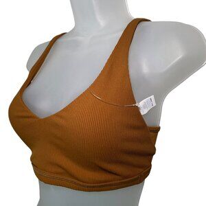 Aerie NWT Brown Ribbed Plunge Bralette Double Strap Mesh Back