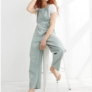 Aerie NWT Moody Mod Green Work & Play Twill Paint Splatter Cotton Overalls XS