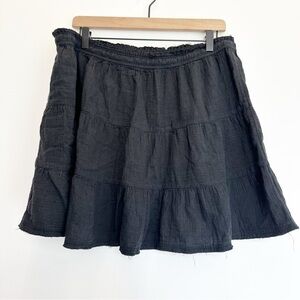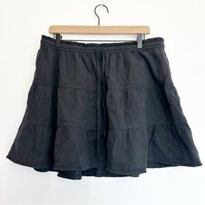 Aerie NWT Pool to Party Tiered Mini Skirt Black Size XL Cotton Gauzy Drawstring