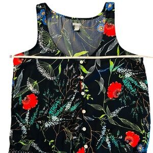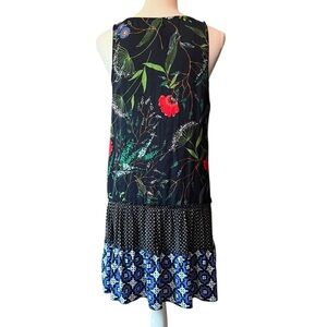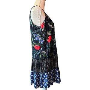 Aerie Navy, Black, Red and Green Patterned Sleeveless Tiered Dress Size Small
