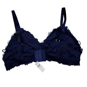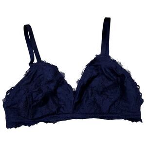 Aerie Navy Blue Rebel Lace Triangle Bralette Unlined XL Strappy Lace Up Side
