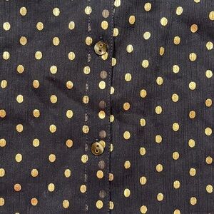 Aerie Navy & Gold Polka Dot Blouse Top Sheer Button Up Size XL EUC Collared
