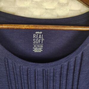 Cute navy "Real Soft" Aerie shirt with ruffle and pleated accents. Ideal for versatile styling. Women's size XXL.